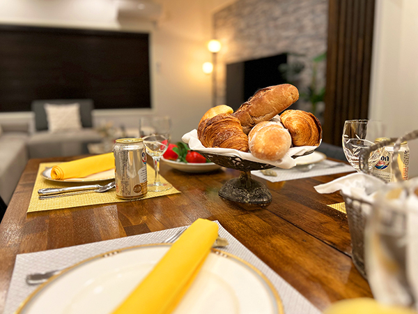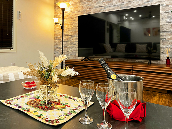 リビングにエキストラベッドを設置すると最大10名様でのご宿泊が可能となります。